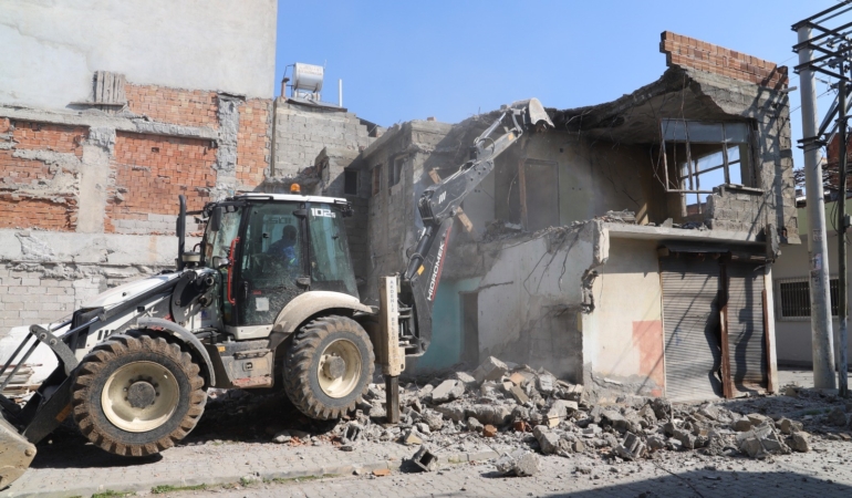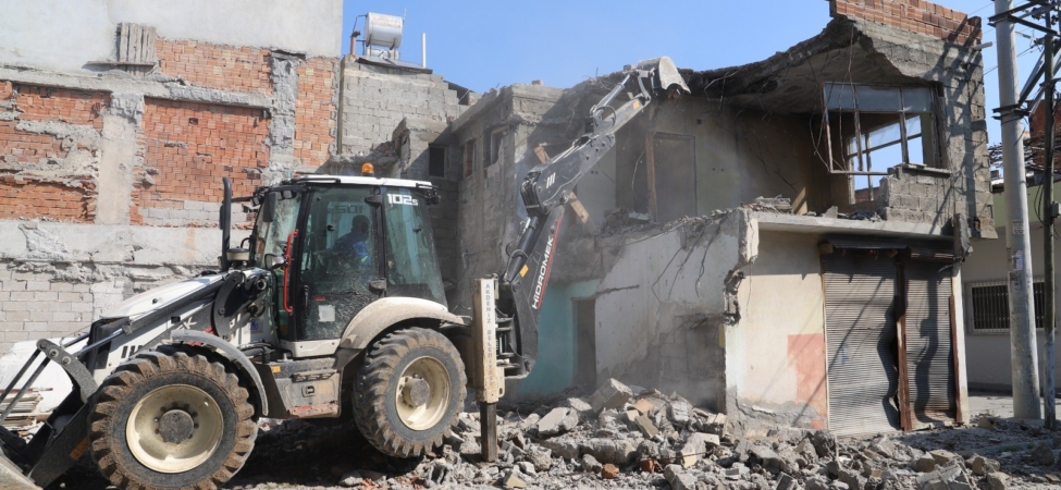 Akdeniz Belediyesi metruk binaları kontrollü şekilde yıkıyor