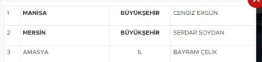 Yayımlanan listeye göre Mersin Büyükşehir Belediye Başkan Adayı Serdar Soydan oldu.