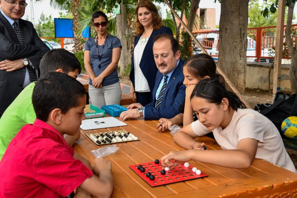 Okula gelişinde, Mezitli İlçe Milli Eğitim Müdürü Dursun Kılıç, okul yöneticileri, öğretmenler ve öğrenciler tarafından çiçeklerle karşılanan Vali Pehlivan, ilk olarak okulun bahçesinde reversi, küre ve mangala strateji oyunları oynayan öğrencilere bir süre eşlik etti, öğrencilerle sohbet etti, kitap hediye etti.